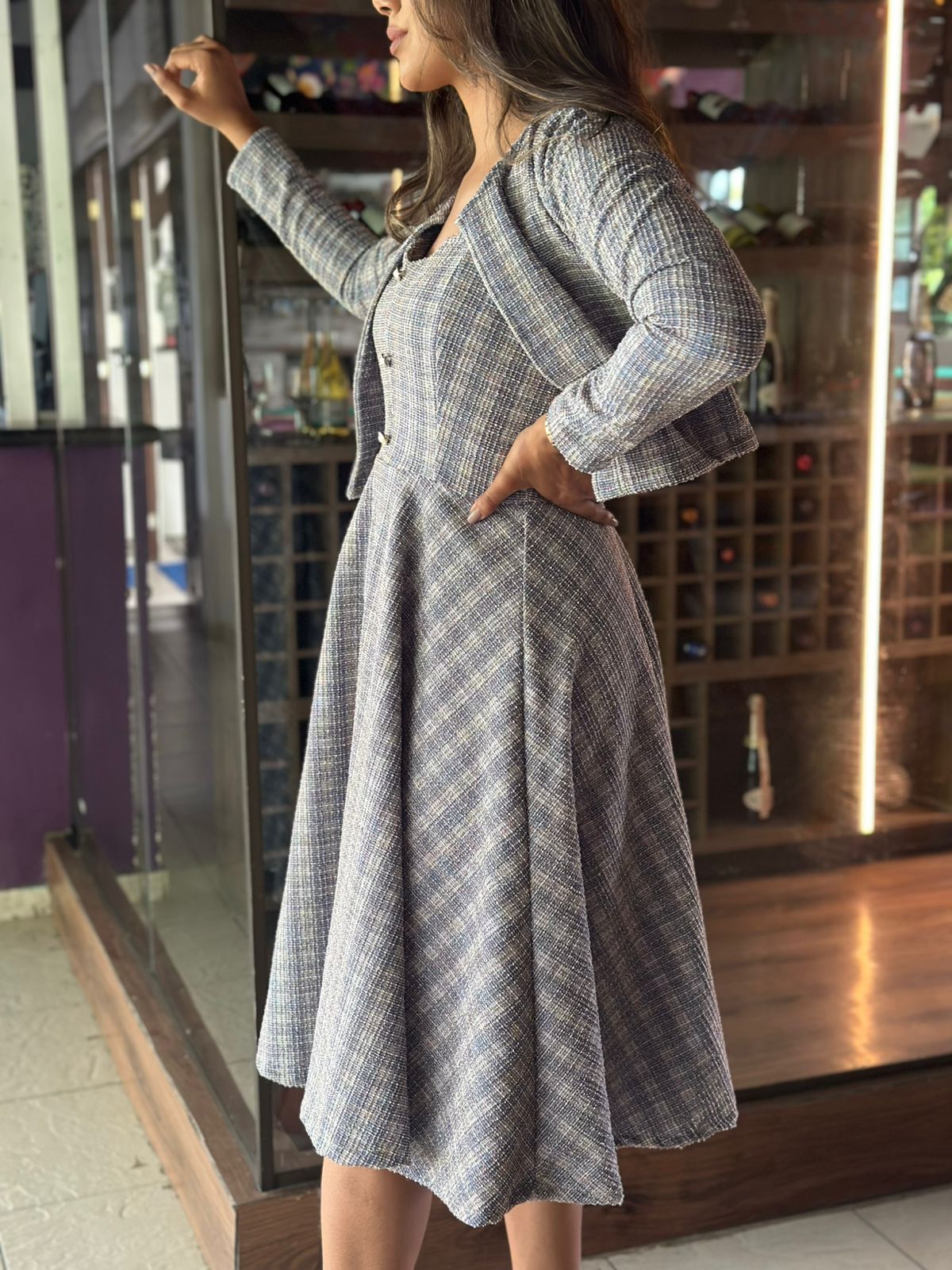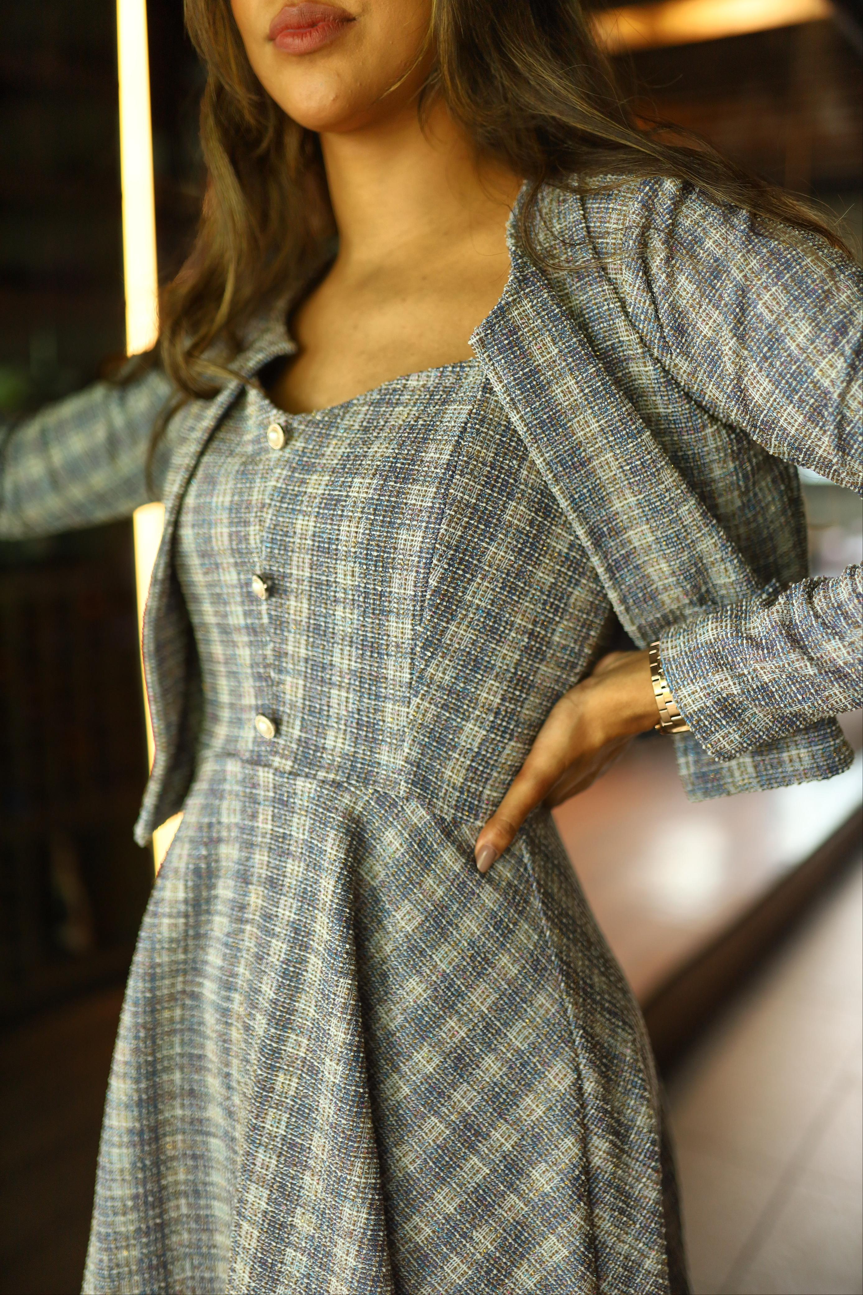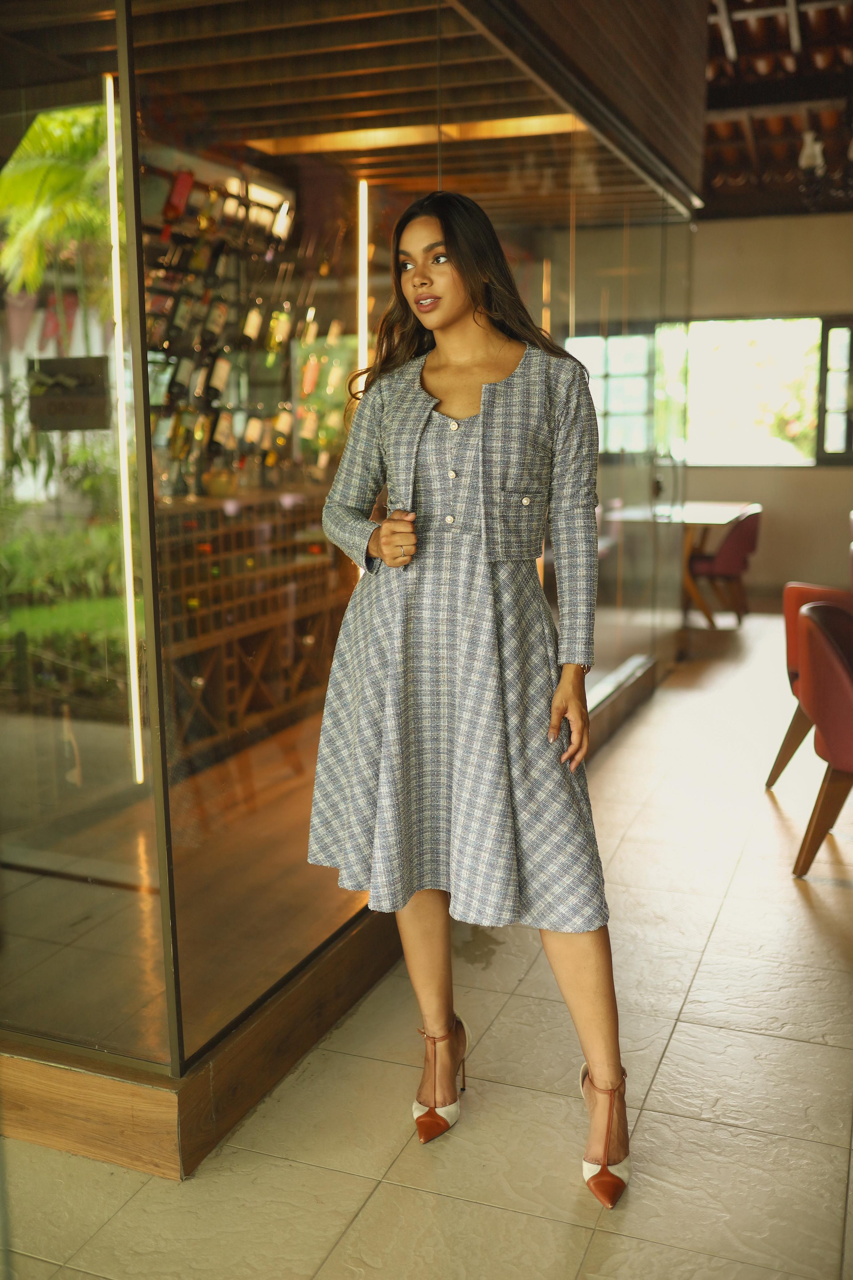 Clássico e sofisticado, o Conjunto Chanel une blazer estruturado com saia de corte reto, em tecido premium. Perfeito para um visual elegante e poderoso – do trabalho a eventos especiais.