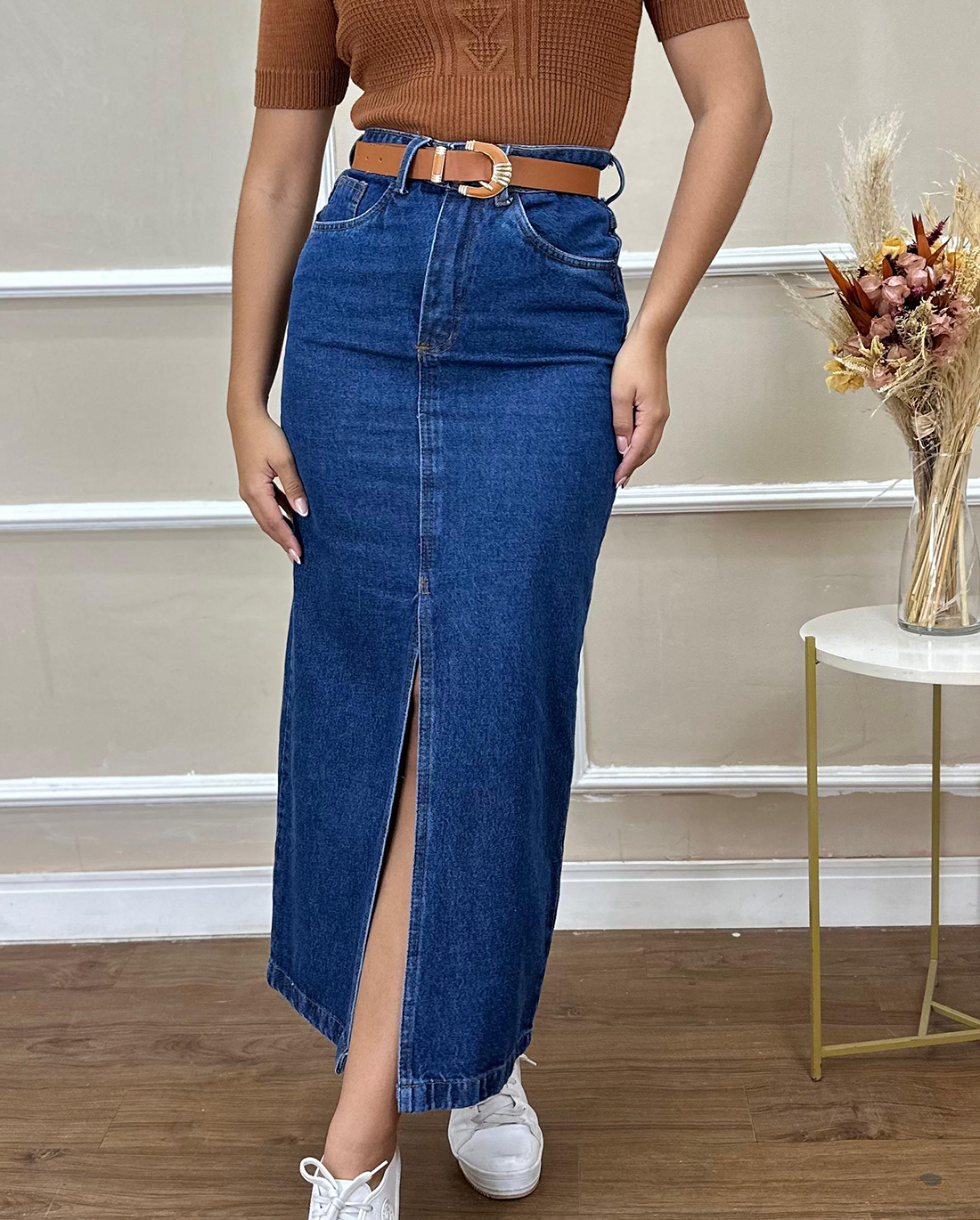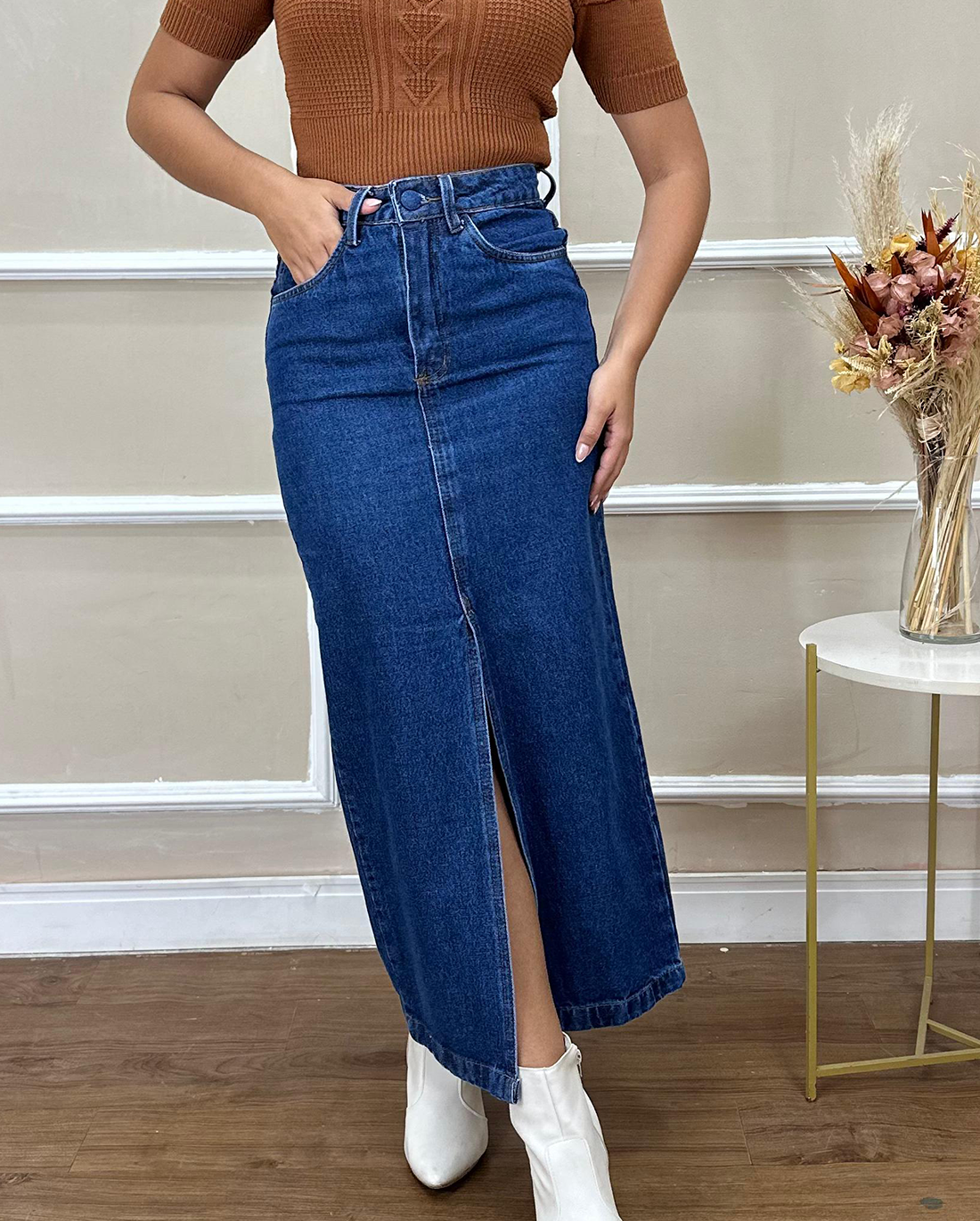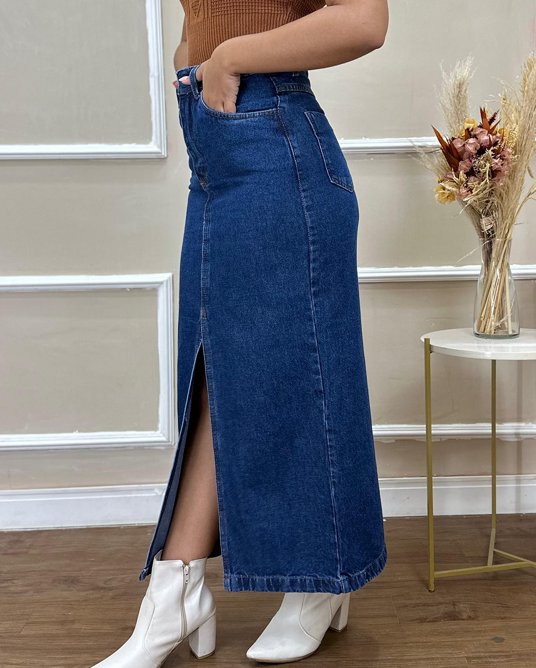 Apresentamos a Saia Giovana, uma peça que une a versatilidade do jeans de caimento estruturado ao charme de sua fenda frontal. Sua modelagem ajustada reta é realçada pelo cós largo, que abraça suavemente o corpo, ressaltando a silhueta de maneira elegante. Os bolsos na frente e os bolsos traseiros não apenas adicionam um toque funcional, mas também trazem um detalhe moderno. enquanto a identificação da marca, RC CLOTHING, são os selos de autenticidade da peça.