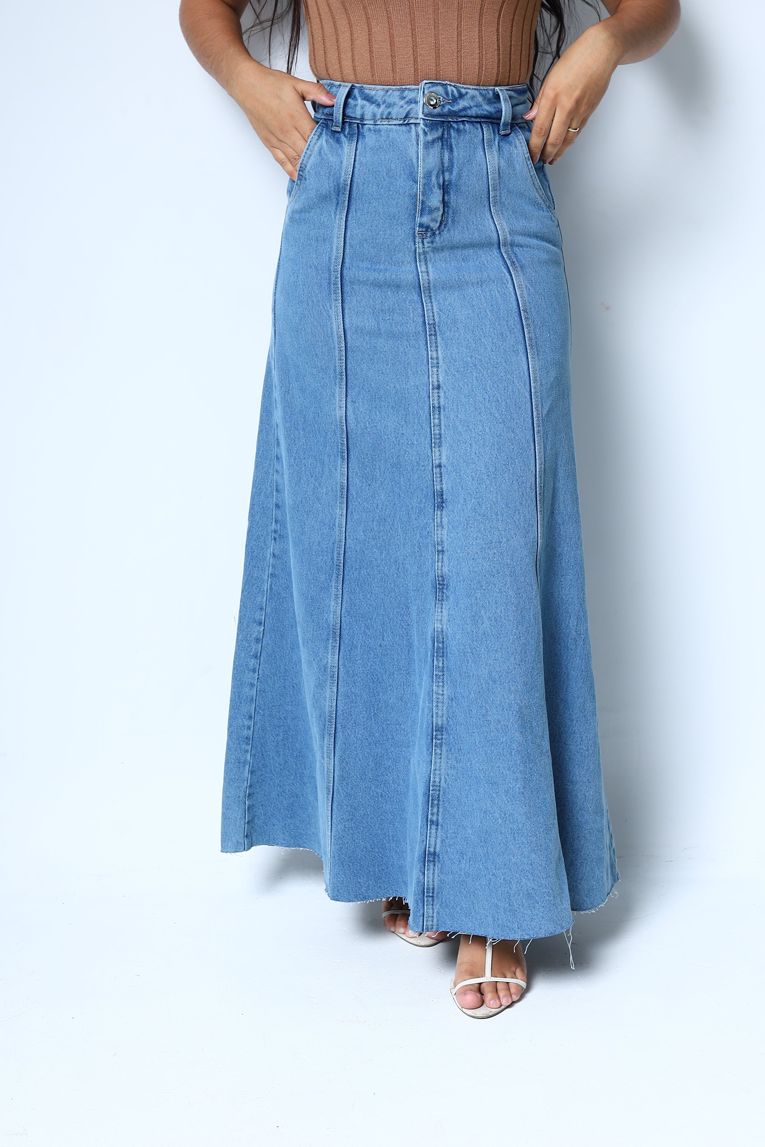 A Saia Gláucia é a escolha perfeita para quem busca sofisticação aliada ao conforto do jeans. Com um design longo e fluido, ela oferece uma silhueta elegante e atemporal, ideal para compor desde looks casuais até produções mais refinadas.