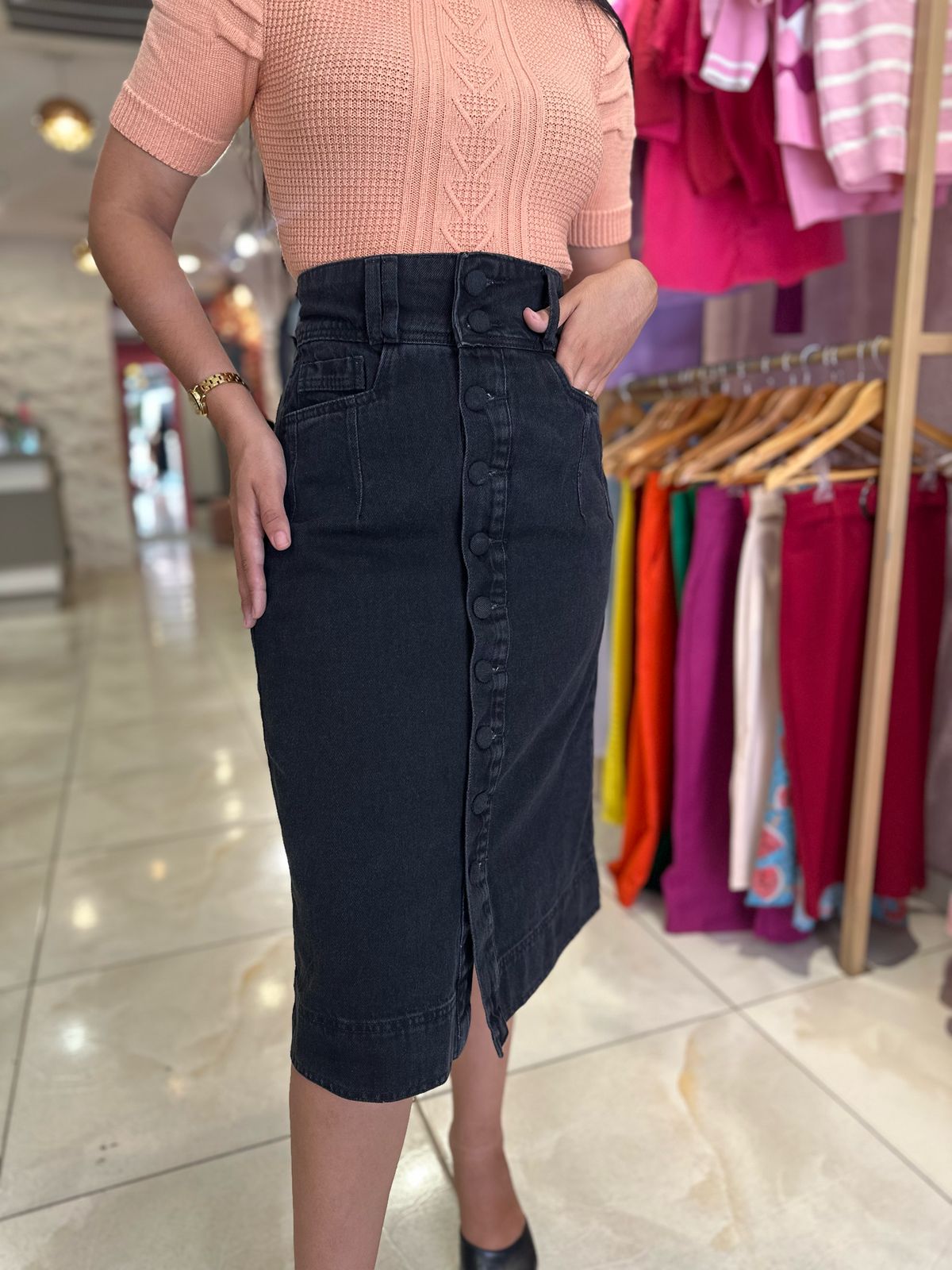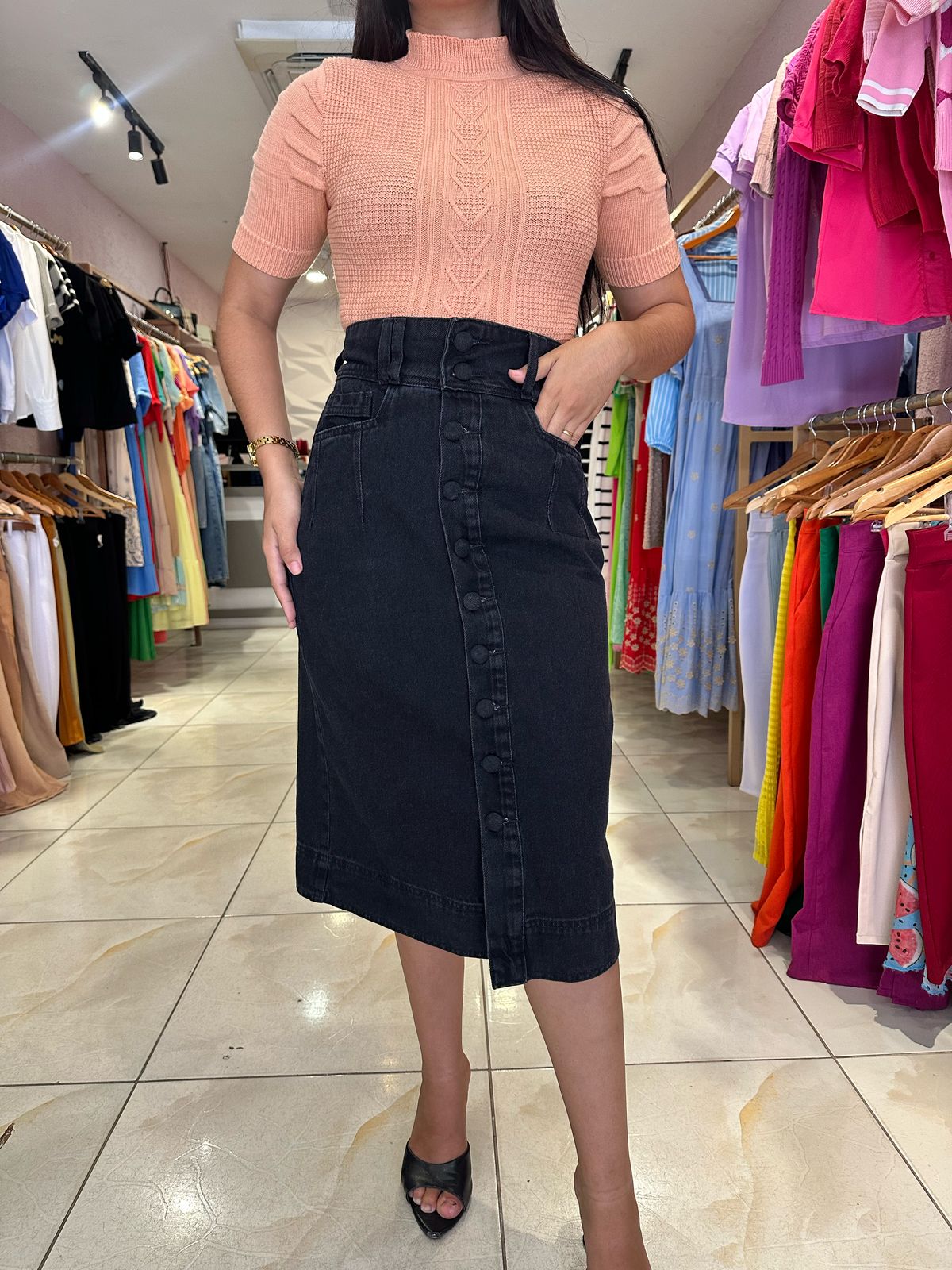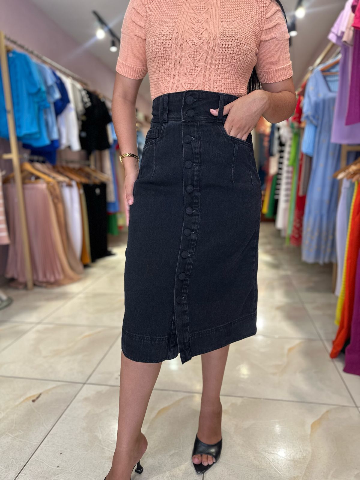A Saia Íris é aquele clássico repaginado que não pode faltar no guarda-roupa. Com modelagem evasê que valoriza a silhueta, ela é confeccionada em jeans premium, garantindo caimento impecável e conforto o dia todo. Os botões forrados no mesmo tecido dão um toque de sofisticação e elegância ao visual, enquanto o acabamento refinado reforça a exclusividade da peça. Ideal para compor looks versáteis, do casual chic ao mais elaborado.