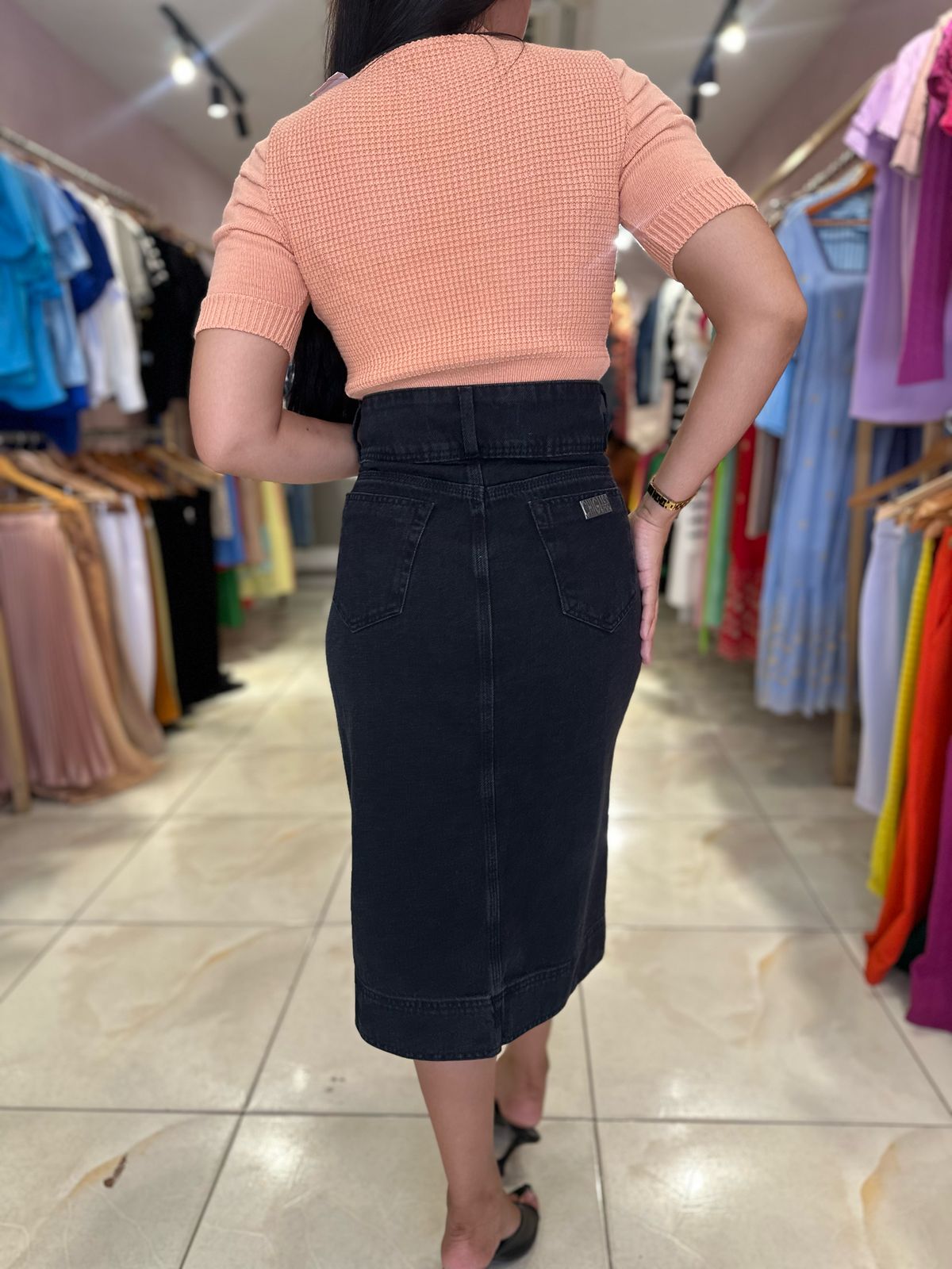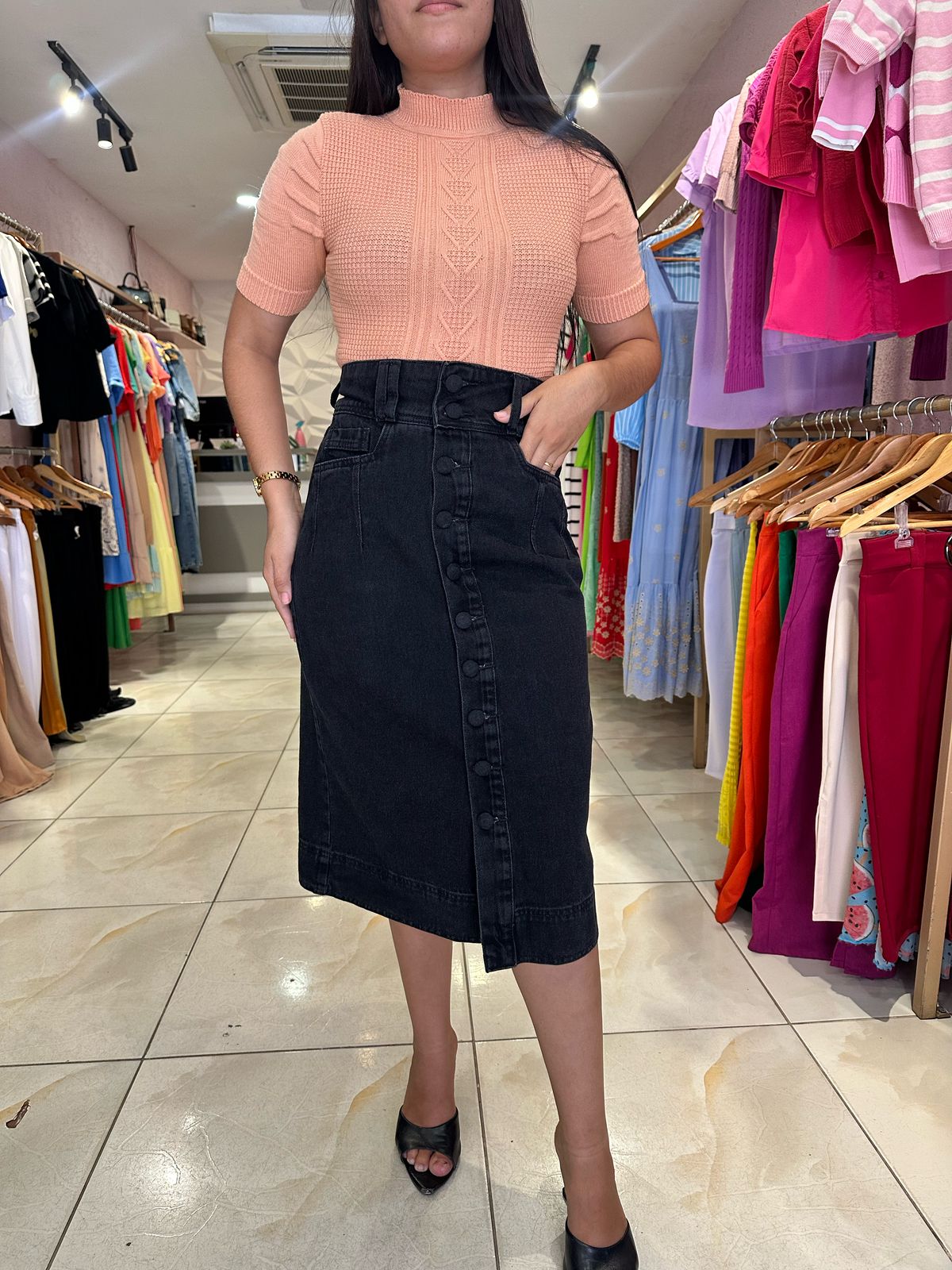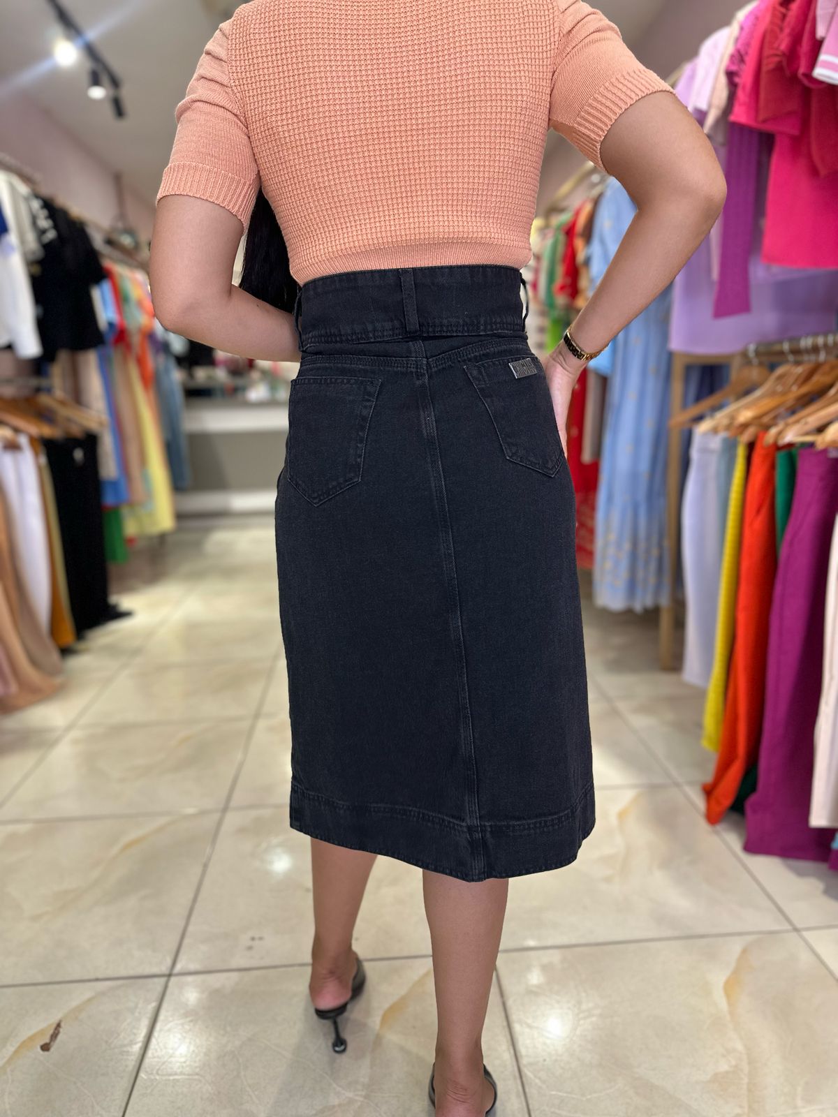A Saia Íris é aquele clássico repaginado que não pode faltar no guarda-roupa. Com modelagem evasê que valoriza a silhueta, ela é confeccionada em jeans premium, garantindo caimento impecável e conforto o dia todo. Os botões forrados no mesmo tecido dão um toque de sofisticação e elegância ao visual, enquanto o acabamento refinado reforça a exclusividade da peça. Ideal para compor looks versáteis, do casual chic ao mais elaborado.