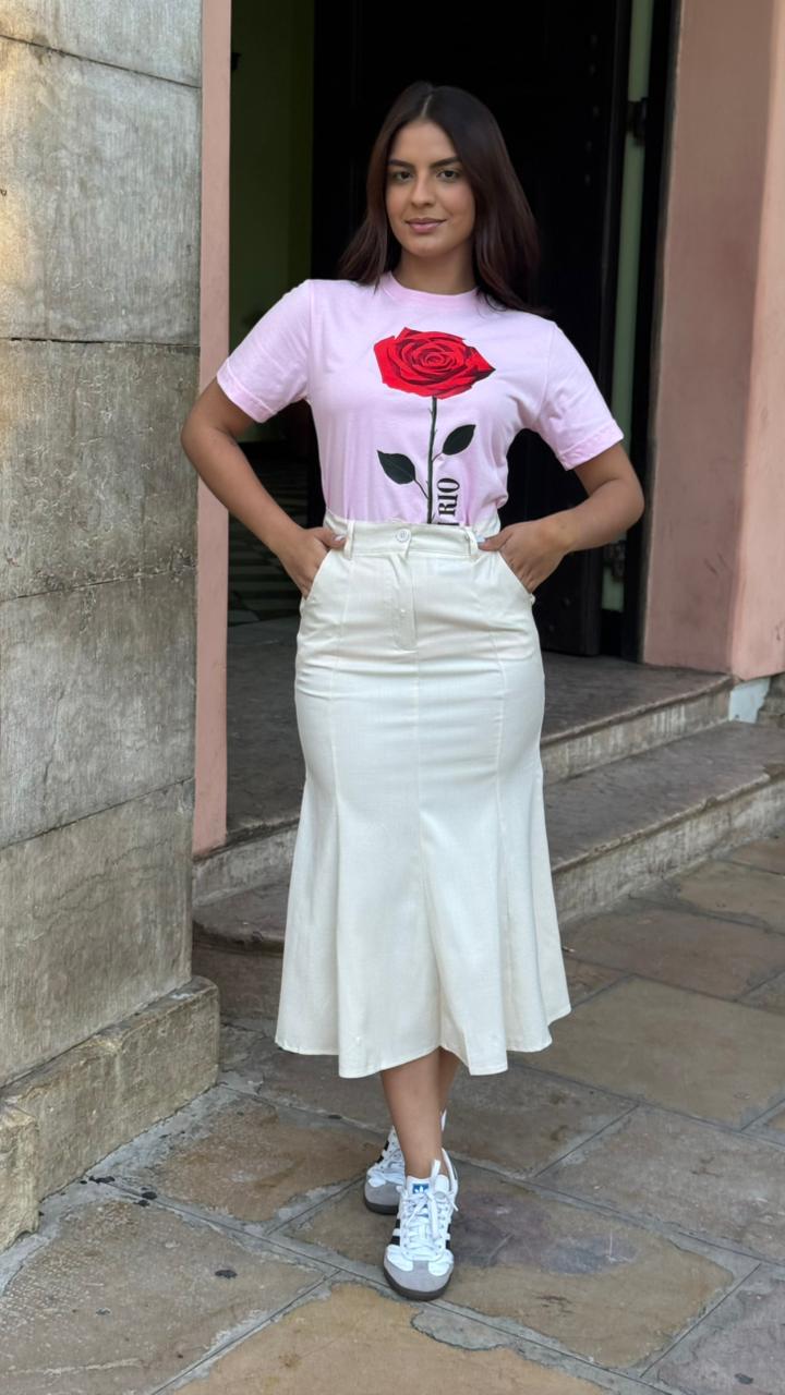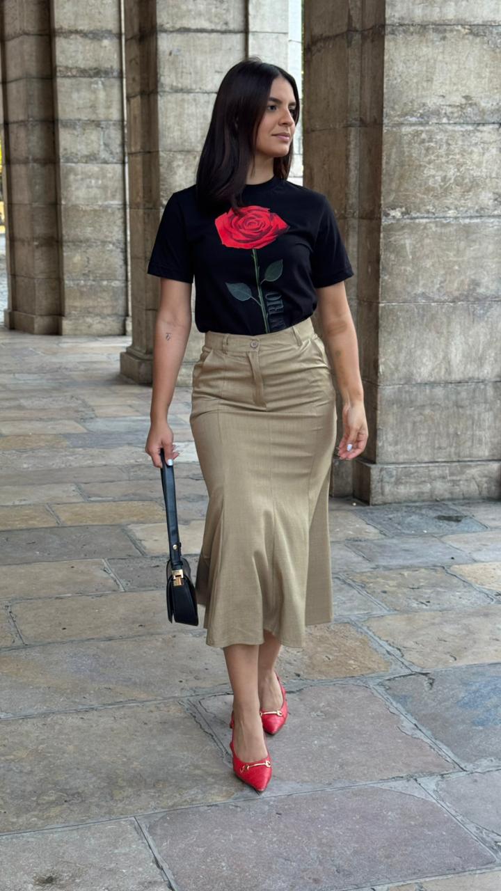 A saia Lorena é a escolha ideal para quem busca um look feminino, fluido e cheio de personalidade. Confeccionada em tecido leve e estruturado, ela proporciona um caimento elegante que valoriza as curvas com sutileza e movimento.