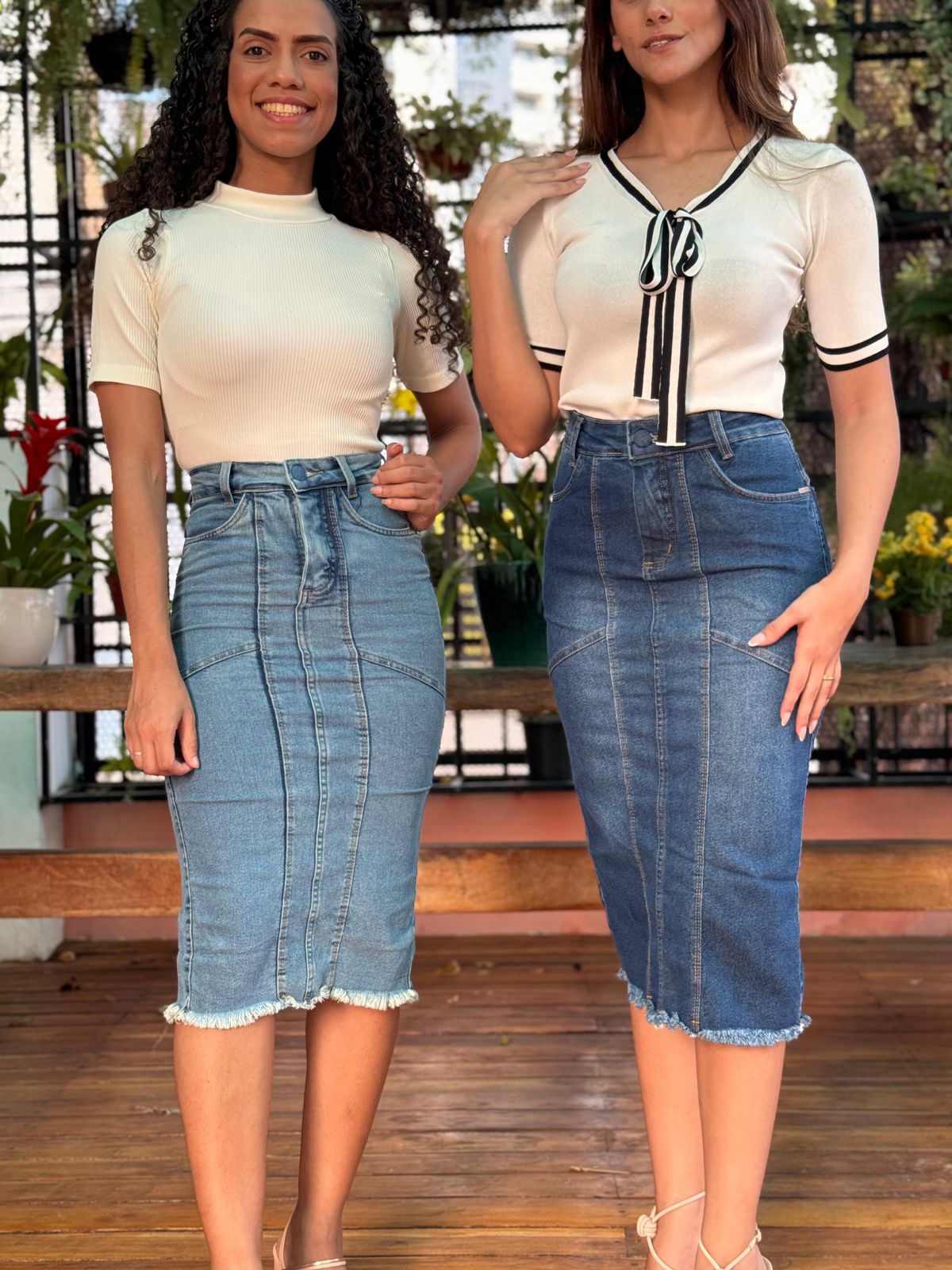 Disponível nas lavagens jeans claro e escuro, a Saia Milena se adapta a diferentes estilos e ocasiões — do casual ao sofisticado. Seu caimento reto valoriza a silhueta de forma sutil, enquanto o acabamento refinado garante uma peça durável, estilosa e fácil de combinar com tudo.