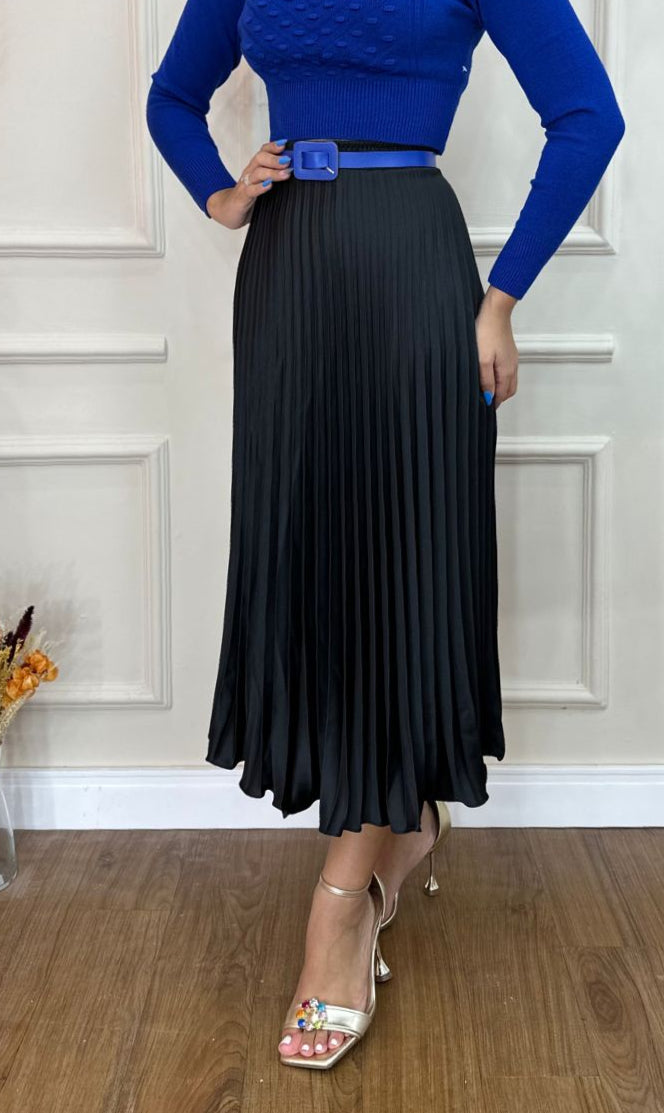 A saia plissada premium é a união perfeita entre sofisticação e leveza. Confeccionada em tecido de alta qualidade, como chiffon de seda, crepe italiano ou cetim fosco, ela oferece um caimento impecável e fluido, que acompanha com graça cada movimento.