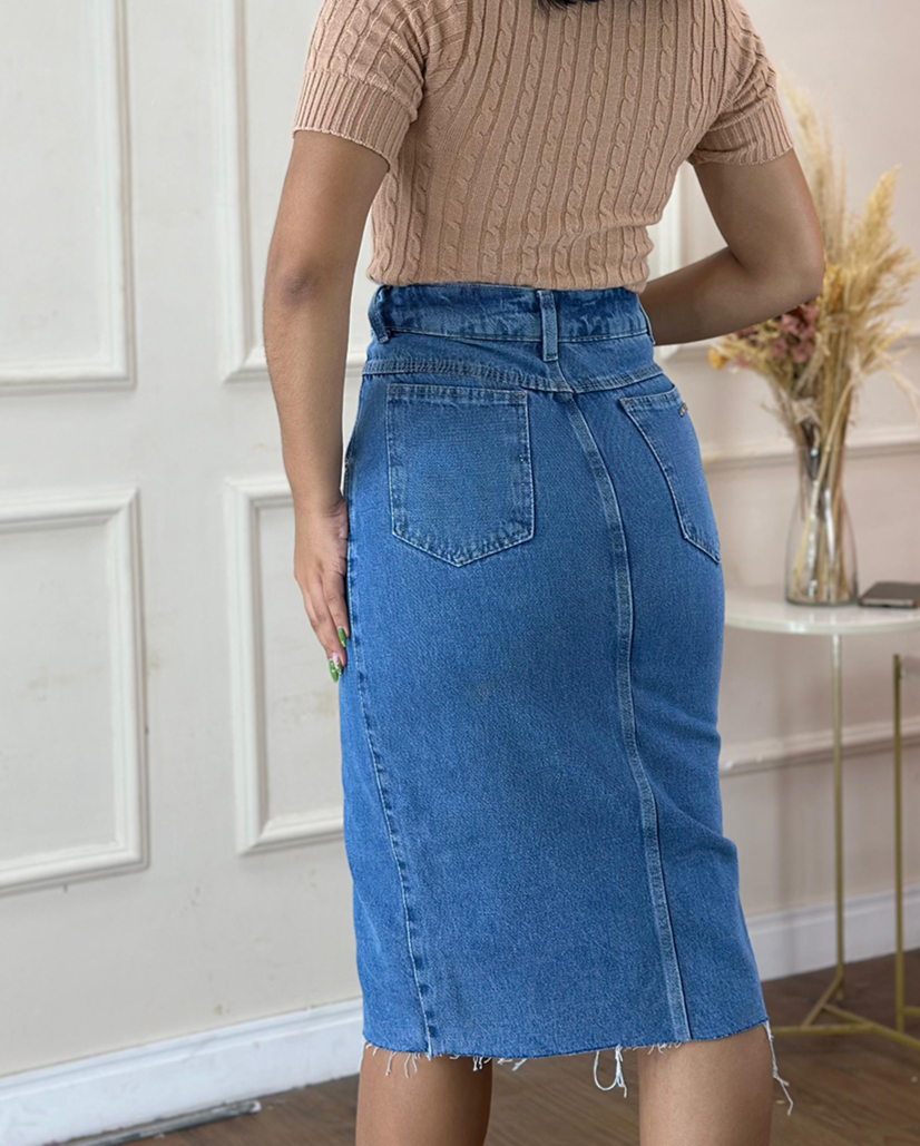 A saia Priscila é uma peça curinga com estilo clássico e toque contemporâneo. Confeccionada em jeans premium 100% algodão, ela oferece estrutura, durabilidade e um caimento impecável, ideal para quem busca elegância no dia a dia com conforto e autenticidade.