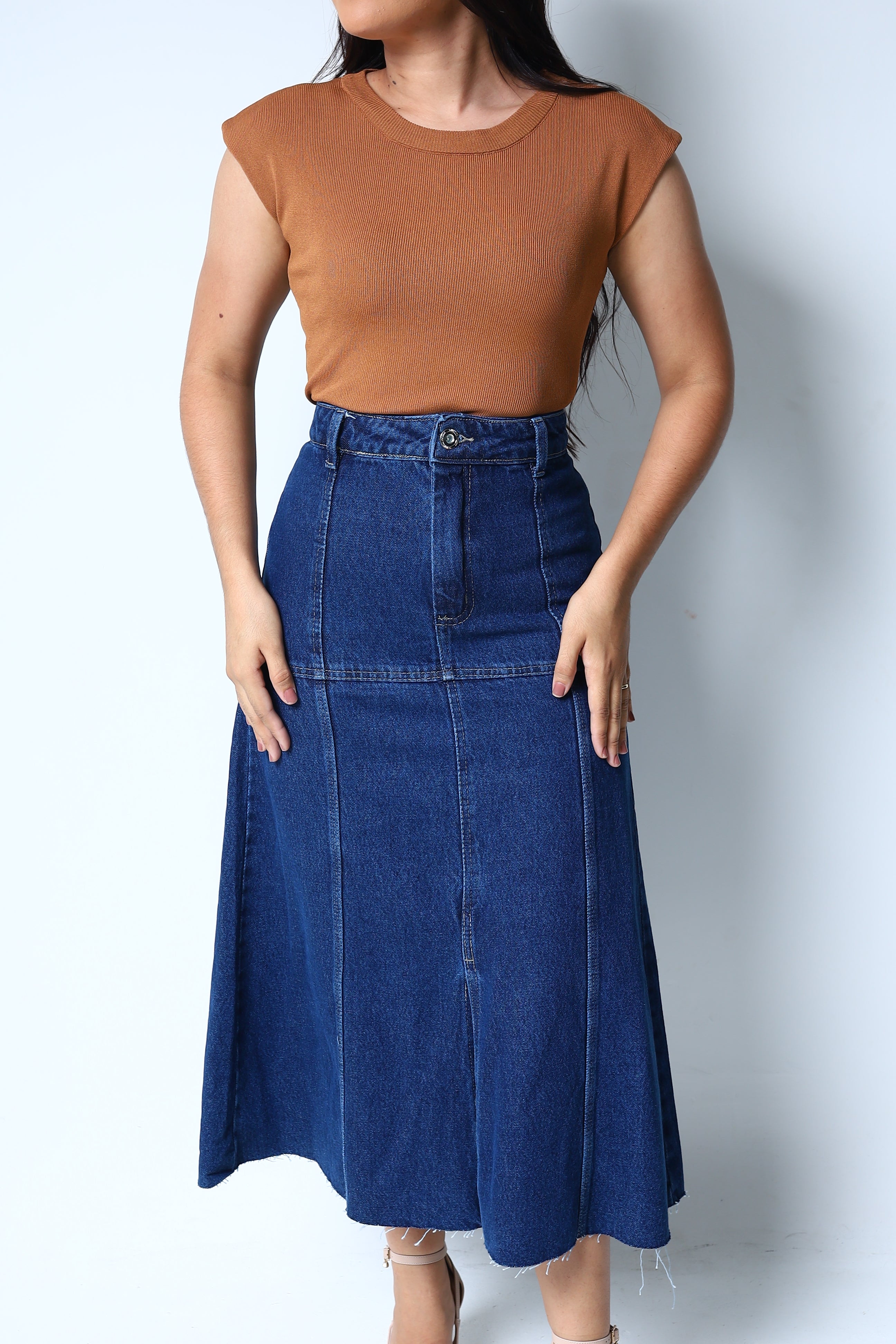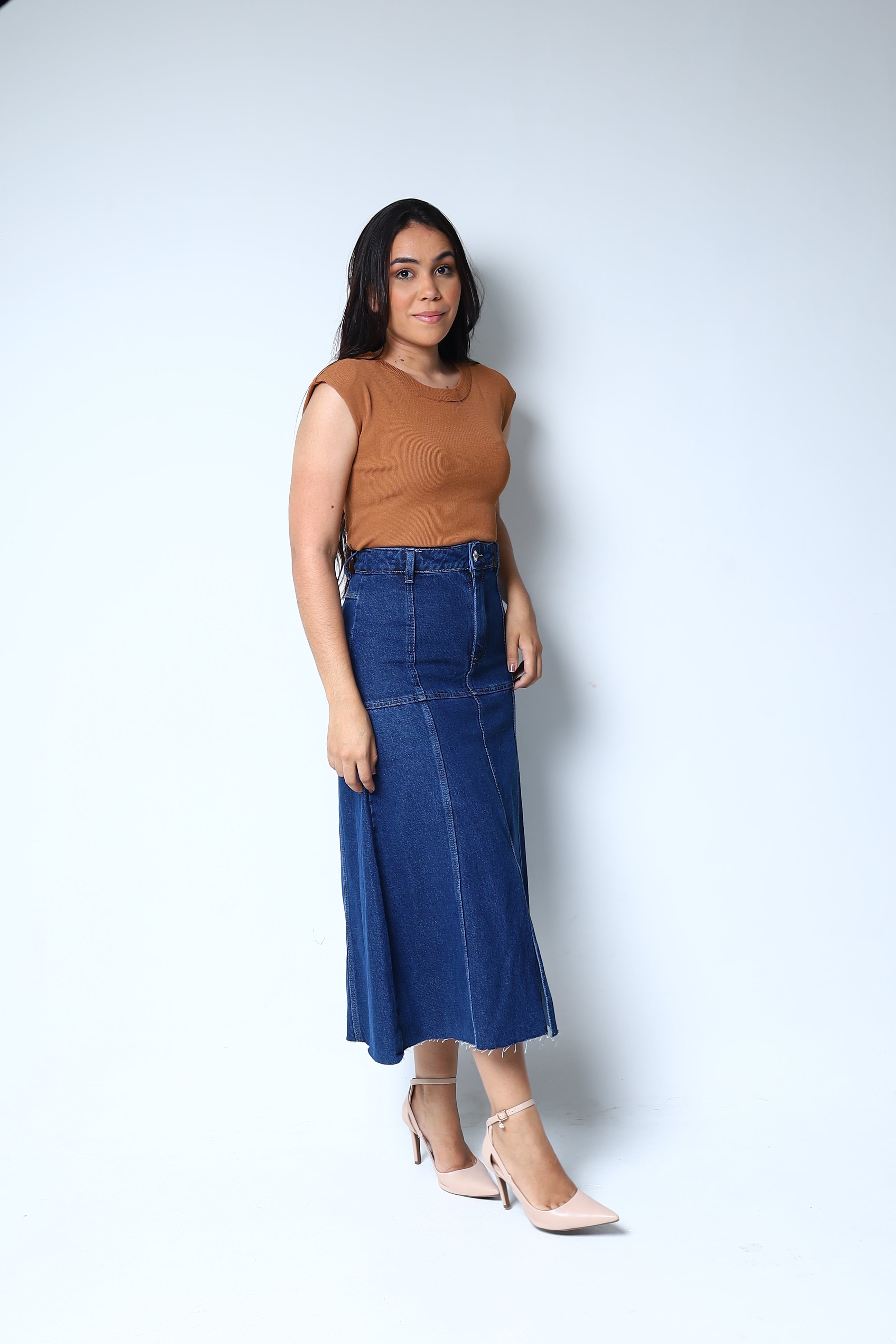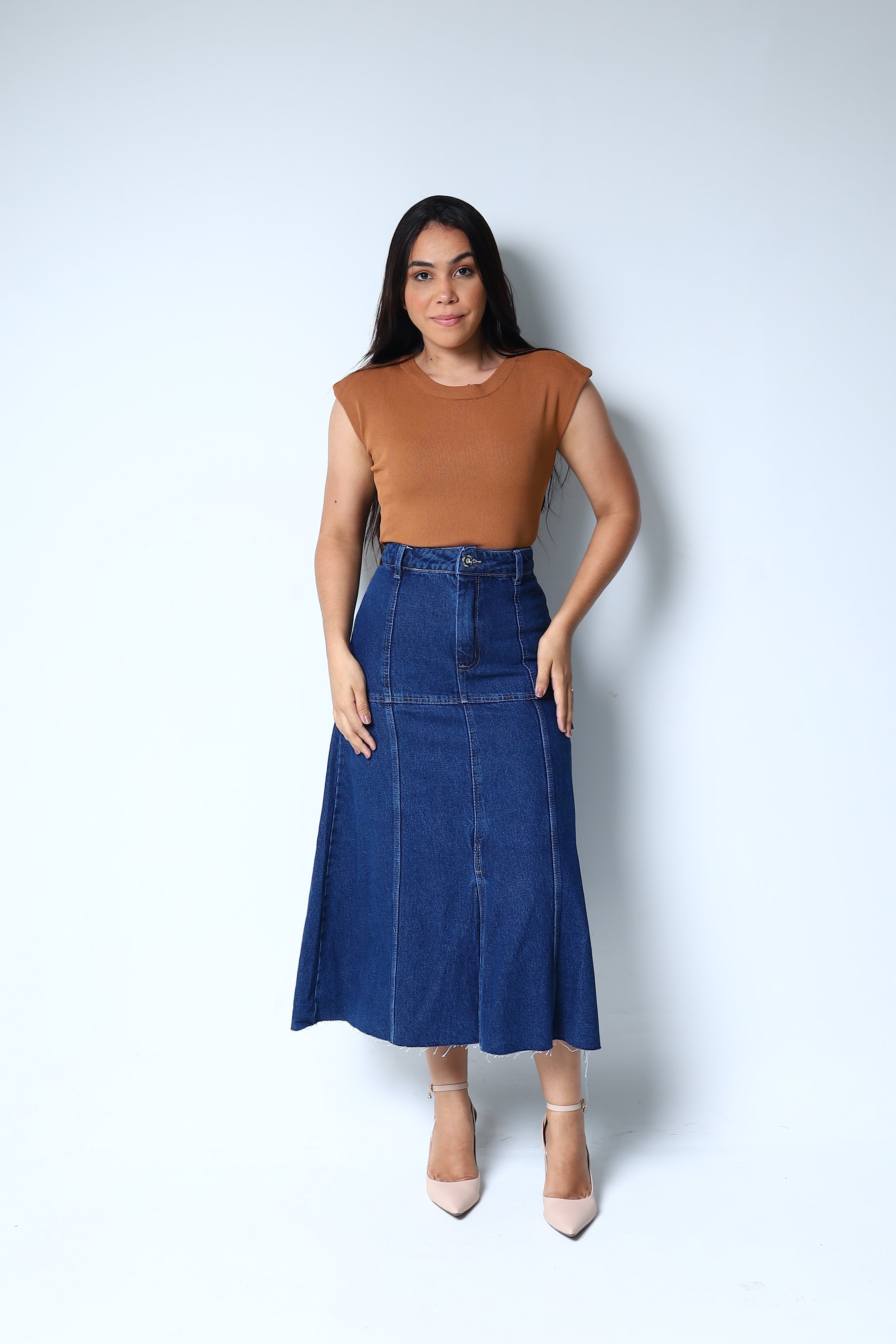 Com um caimento impecável e o toque macio do jeans premium, a Saia Tereza é uma peça atemporal que oferece durabilidade e estilo. Ela é a escolha perfeita para criar looks que vão do escritório ao happy hour, sempre com muito charme.