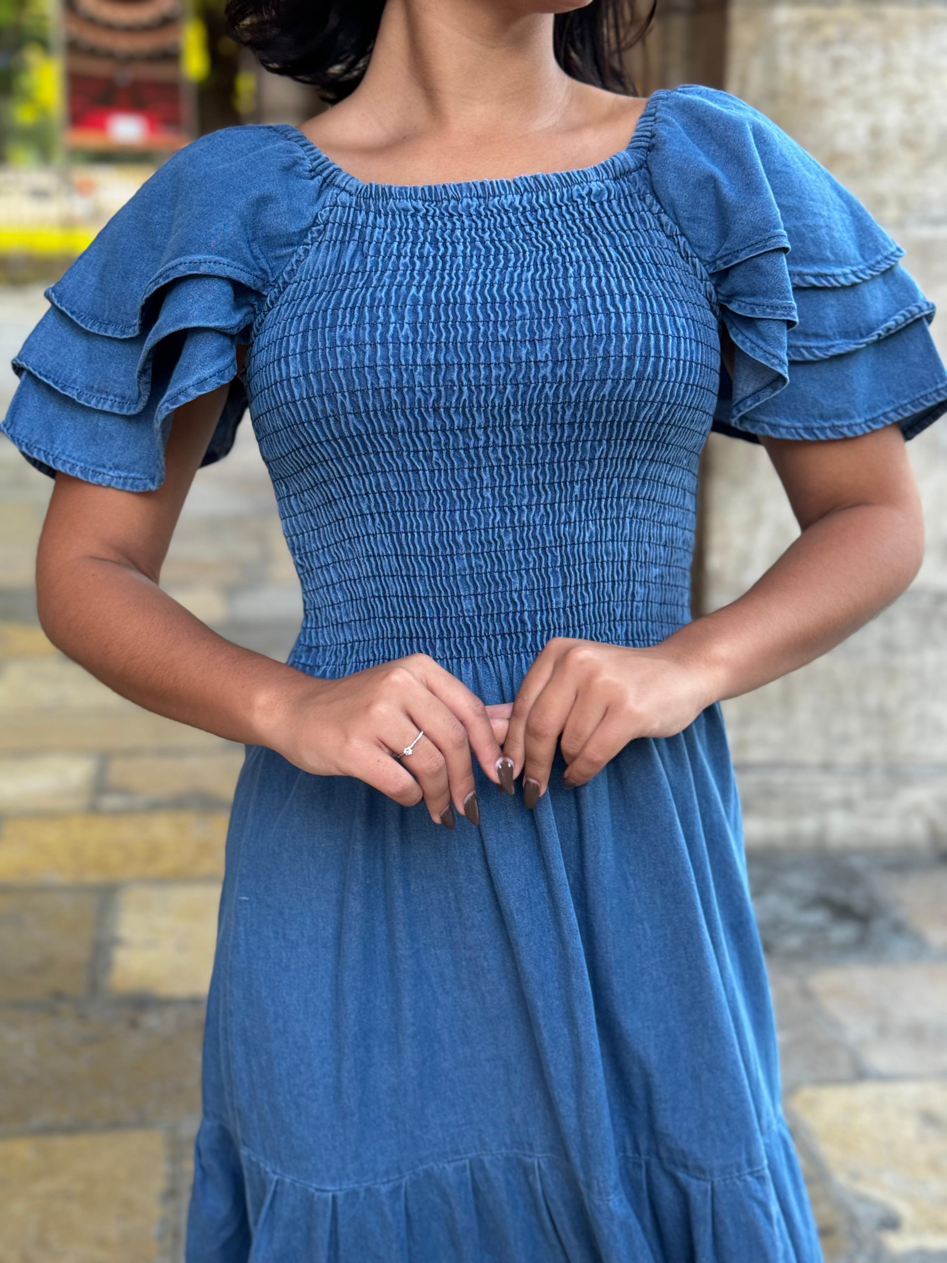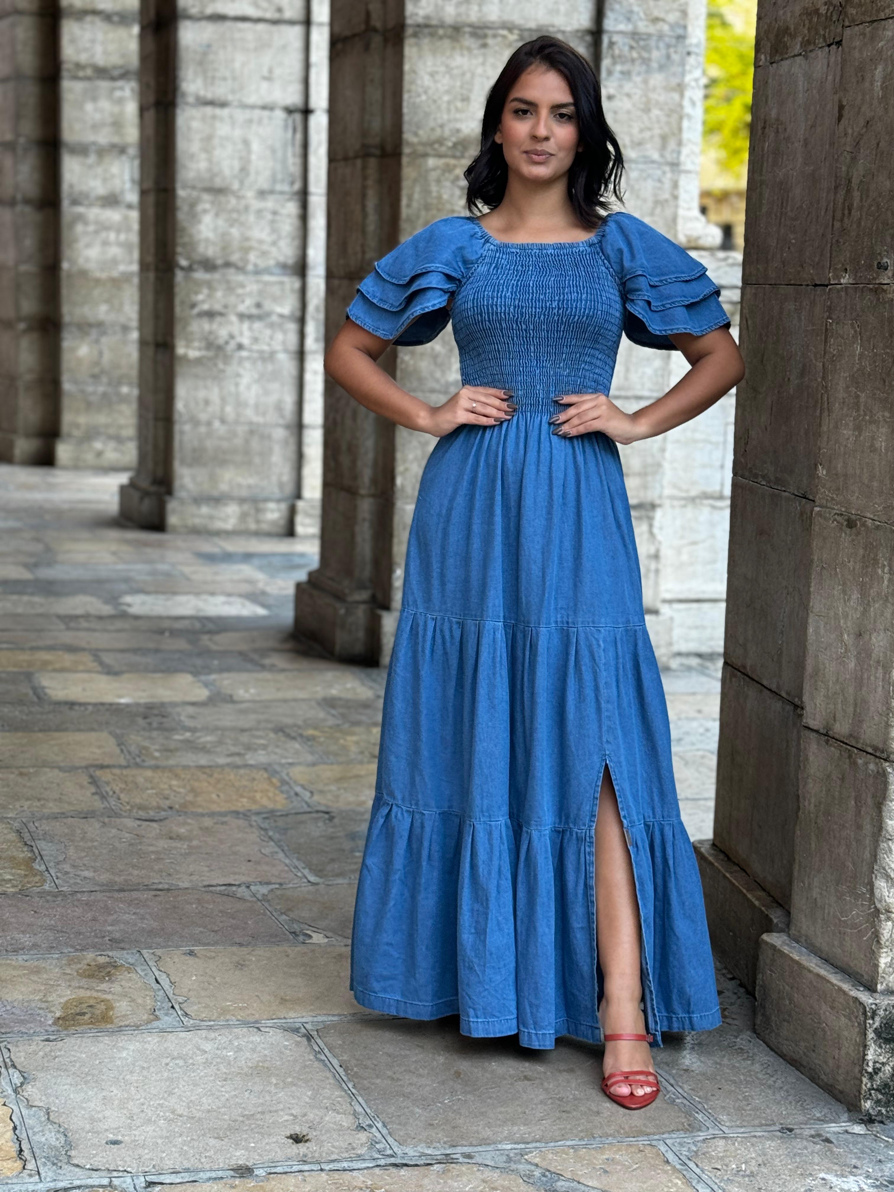 O vestido Patricia, confeccionado em jeans premium 100% algodão e com elastex no busto, combina o charme do jeans de alta qualidade com um ajuste que valoriza a silhueta feminina. O jeans premium de algodão é conhecido por sua durabilidade e conforto, proporcionando um caimento estruturado e elegante.